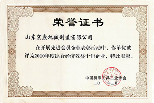 中國機床工具工業(yè)協(xié)會榮譽證書