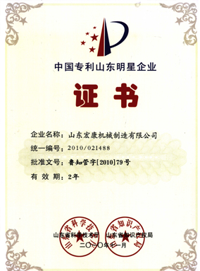 中國專利山東明星企業(yè)證書